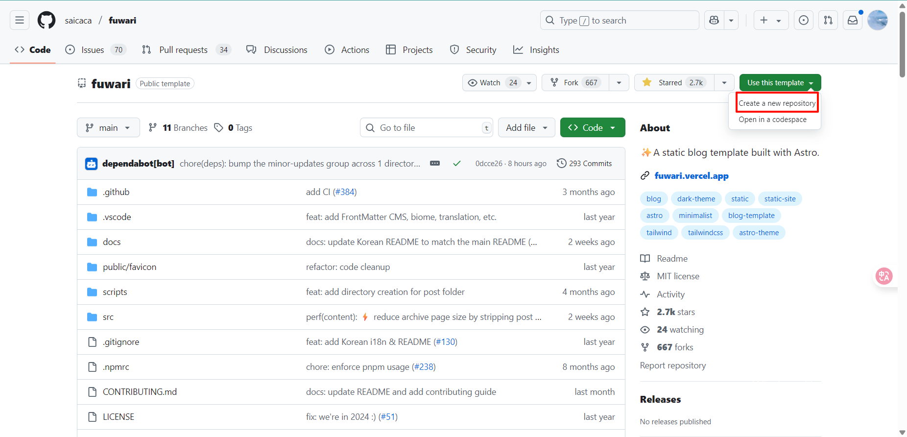 点击此链接进入saicaca/fuwari仓库: